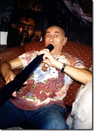 Felix Fibich, as MORRIS POTASHNER, taking his treatment from the Pressure Drop Club's in-house eight-foot bong.