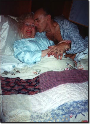 "Oy, Boobie, the pressure definitely went down." MORRIS and IDA POTASHNER in a romantic embrace after MORRIS's first night of treatment.